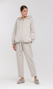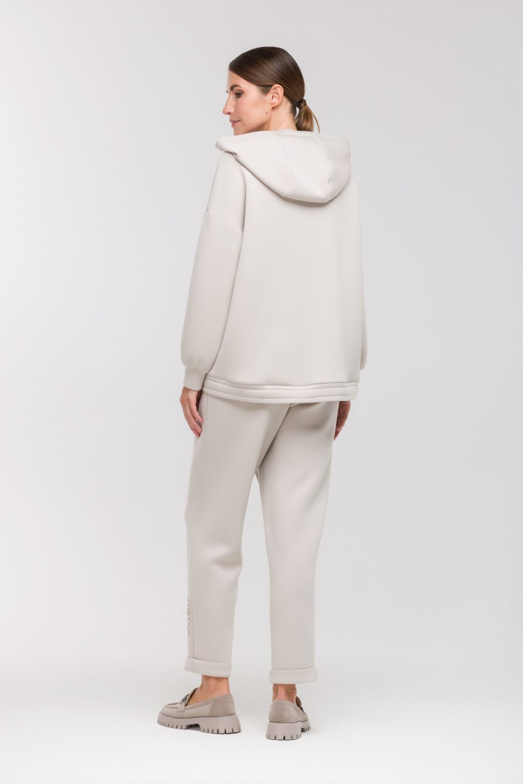 Прямые брюки из трикотажного неопрена становятся отличным примером того, как комфорт и стиль могут соединяться в одной вещи. Мягкий материал приятно облегает фигуру, не сковывая движений, и дарит ощущение свободы в течение всего дня. Отсутствие застежки делает посадку максимально легкой, а эластичный пояс аккуратно фиксирует брюки на талии, не доставляя ни малейшего дискомфорта. Средняя посадка подчеркивает естественные линии силуэта, сохраняя актуальность и позволяя комбинировать брюки с различными верхами — от лаконичных футболок до объемных свитеров. Прямой крой делает модель универсальной: она гармонично вписывается как в динамичный городской ритм, так и в более расслабленную атмосферу выходных. Два наклонных кармана в боковых швах становятся приятной деталью — в них удобно прятать руки или мелочи, которые всегда хочется держать под рукой. Эти брюки легко адаптируются под настроение и задачи дня, оставаясь актуальными вне зависимости от времени года. Внимание к деталям, качество материалов и современный силуэт делают их не просто базовой вещью, а элементом, который помогает находить баланс между практичностью и индивидуальным стилем. Такой подход позволяет быть уверенным в себе и получать удовольствие от каждой мелочи, которую дарит день.