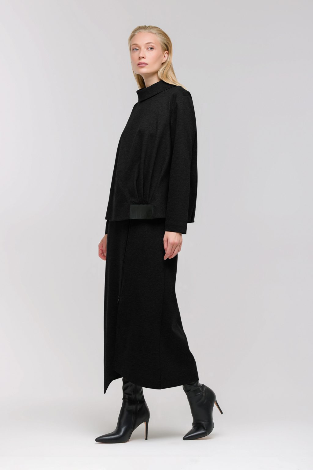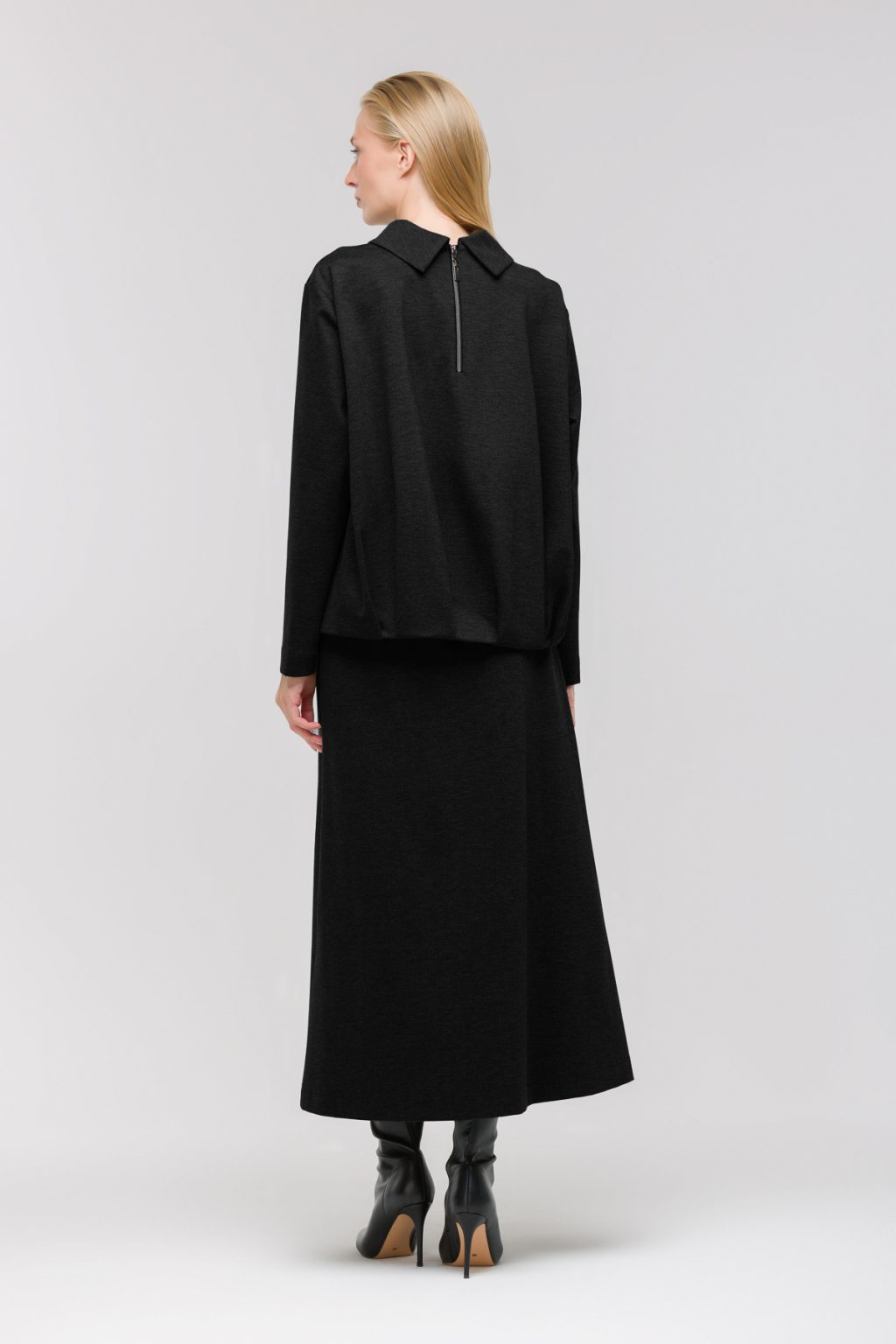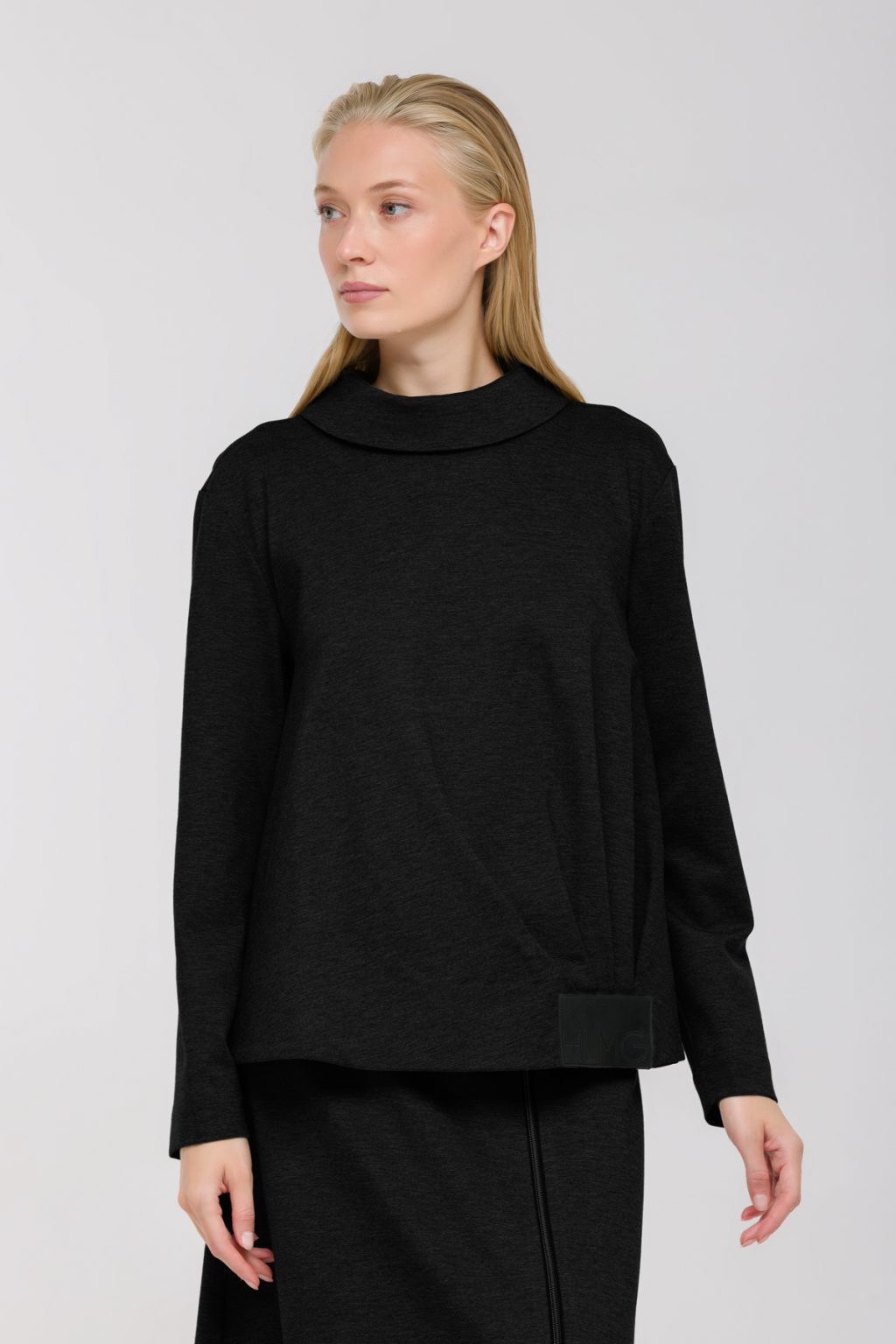 Трикотажная блузка свободного кроя с отложным воротником легко становится основой современного гардероба. Ее мягкая ткань дарит ощущение уюта на протяжении всего дня, а свободный силуэт гармонично подчеркивает индивидуальность и позволяет оставаться собой в любой ситуации. Длинные рукава и спущенная линия плеча создают расслабленный образ, а асимметричные складки под логотип добавляют интересный акцент, который сразу привлекает внимание. Особое настроение задает декоративная молния на спине — этот небольшой, но выразительный элемент подчеркивает уникальность и неординарный взгляд на привычные детали. Отложной воротник придает образу завершенность, а низ на резинке гарантирует идеальную посадку и свободу движений. Блузка гармонично сочетается как с классическими брюками, так и с джинсами, позволяя легко менять настроение и стиль, не теряя ощущения комфорта. В ней хочется встречать новый день, ощущая легкость и уверенность в каждом мгновении.