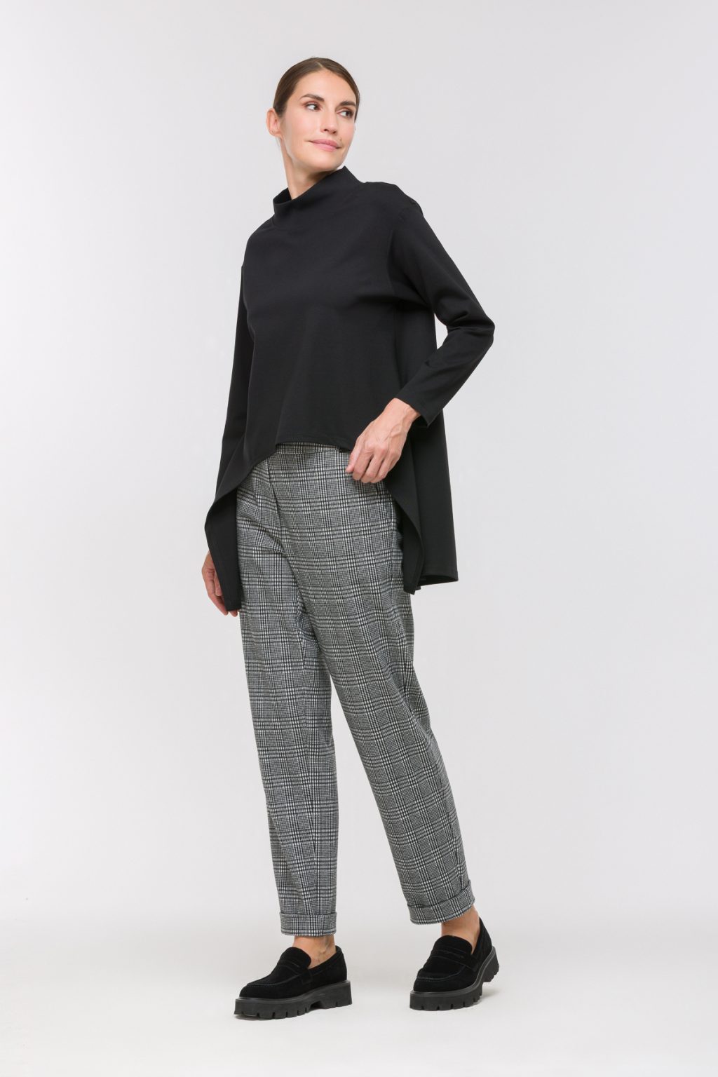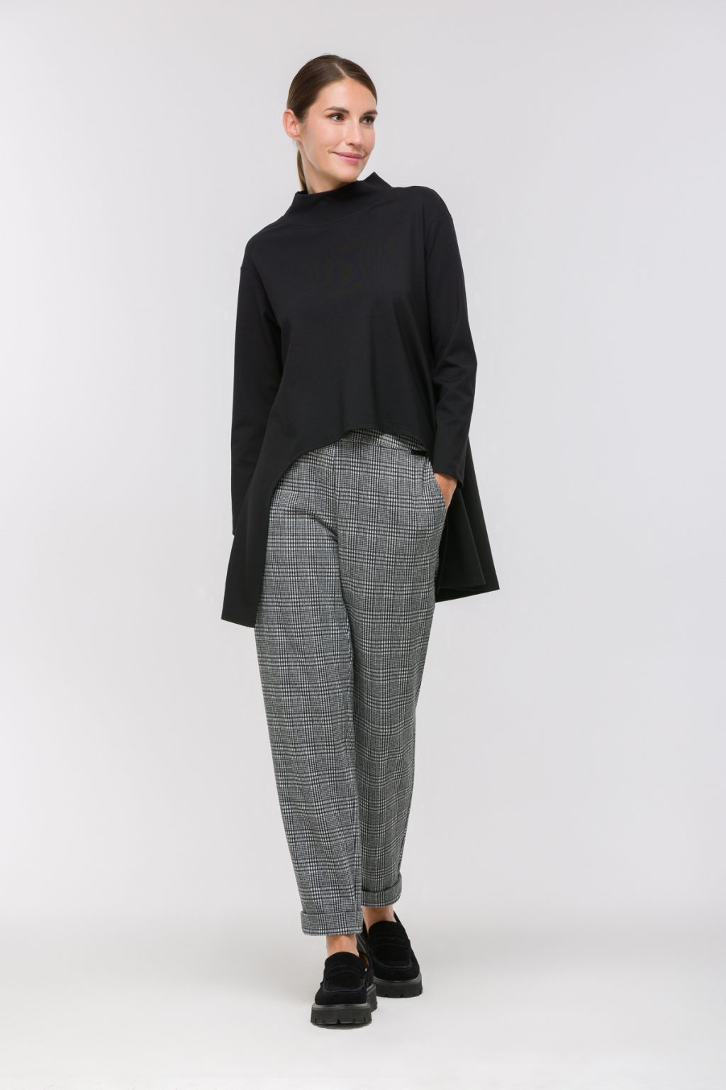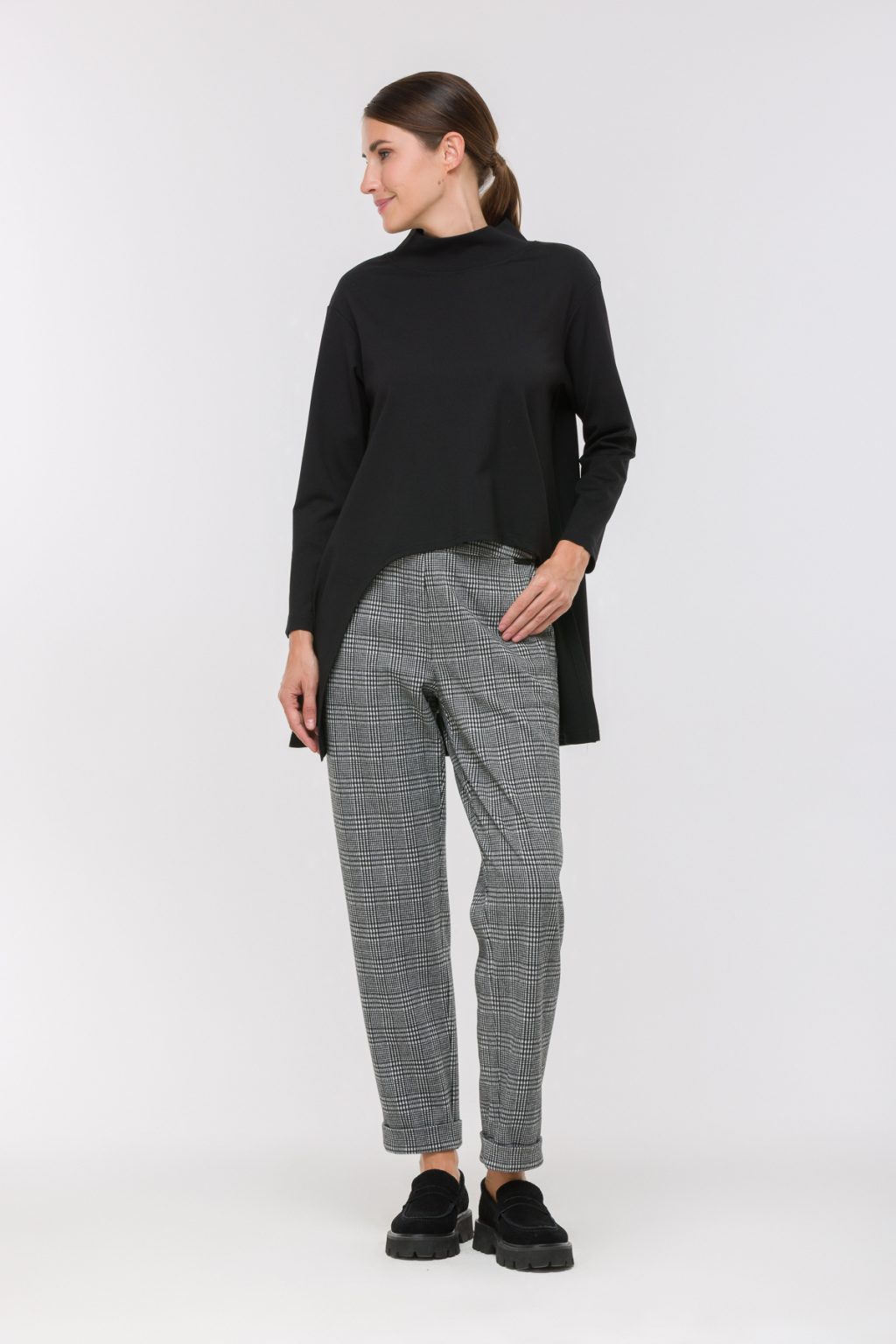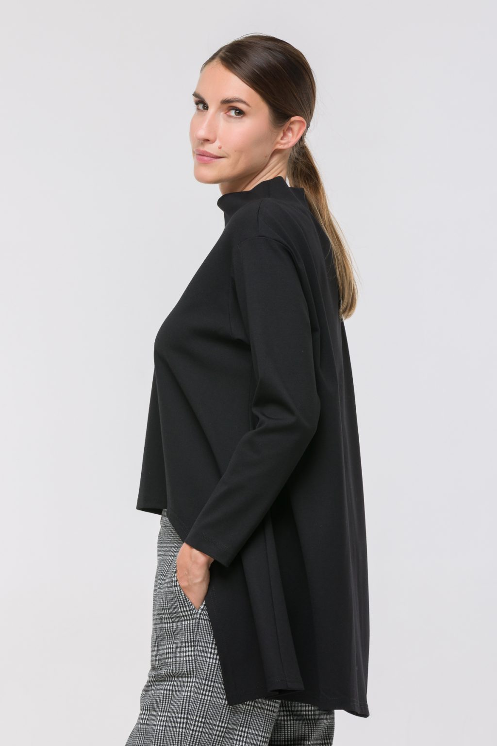 Блузка из трикотажного интерлока с воротником-стойкой и оригинальным прямоугольным вырезом по низу изделия становится тем самым акцентом, который способен преобразить привычный гардероб. Ее свободный крой и удлинённый прямой силуэт создают ощущение легкости и свободы, позволяя чувствовать себя расслабленно в любой обстановке. Мягкая ткань приятно ложится по фигуре, не сковывая движений, а длинные рукава и спущенная линия плеча добавляют образу мягкости и современности. Отсутствие застежек делает блузку ещё более лаконичной и универсальной, а асимметричный низ с прямоугольным вырезом притягивает взгляды и подчеркивает оригинальность стиля. Такой вариант легко сочетается с разными элементами гардероба, позволяя экспериментировать с образом каждый день. Блузка подойдет как для деловой встречи, так и для прогулки по городу, гармонично вписываясь в ритм большого мегаполиса. В ней появляется желание наслаждаться каждым моментом, ощущая комфорт и уверенность вне зависимости от обстоятельств.