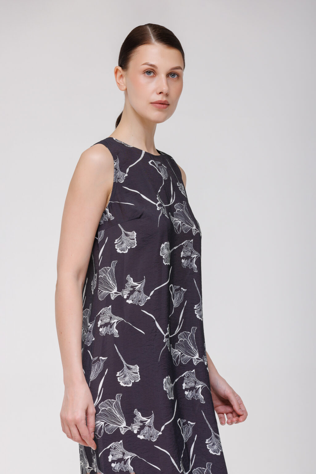 Застёжка на молнию обеспечивает удобство надевания и сохраняет лаконичность силуэта, не нарушая общей гармонии дизайна. Отсутствие подкладки подчёркивает лёгкость изделия: сарафан остаётся воздушным, не создаёт лишнего объёма и особенно комфортен в жаркие дни.