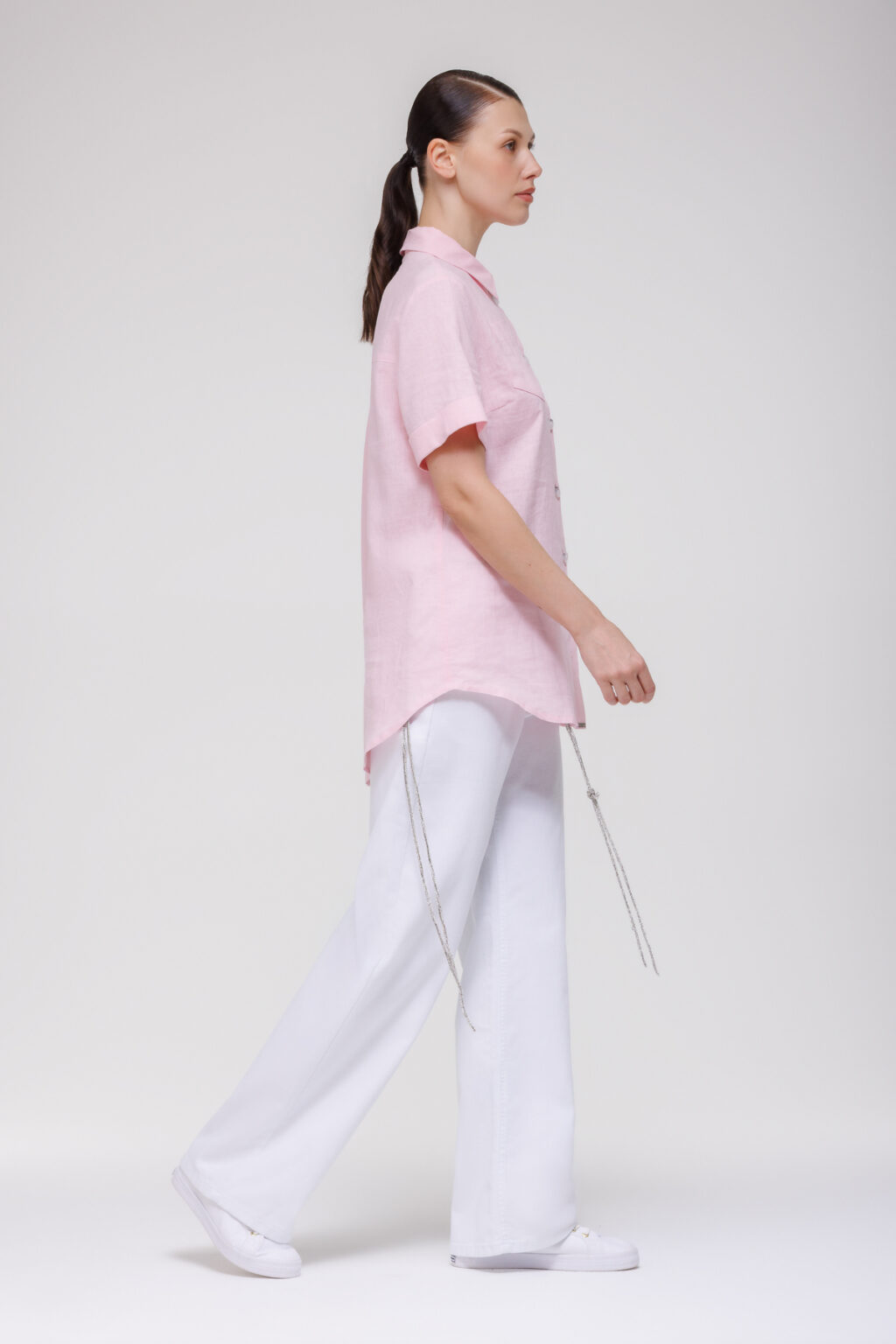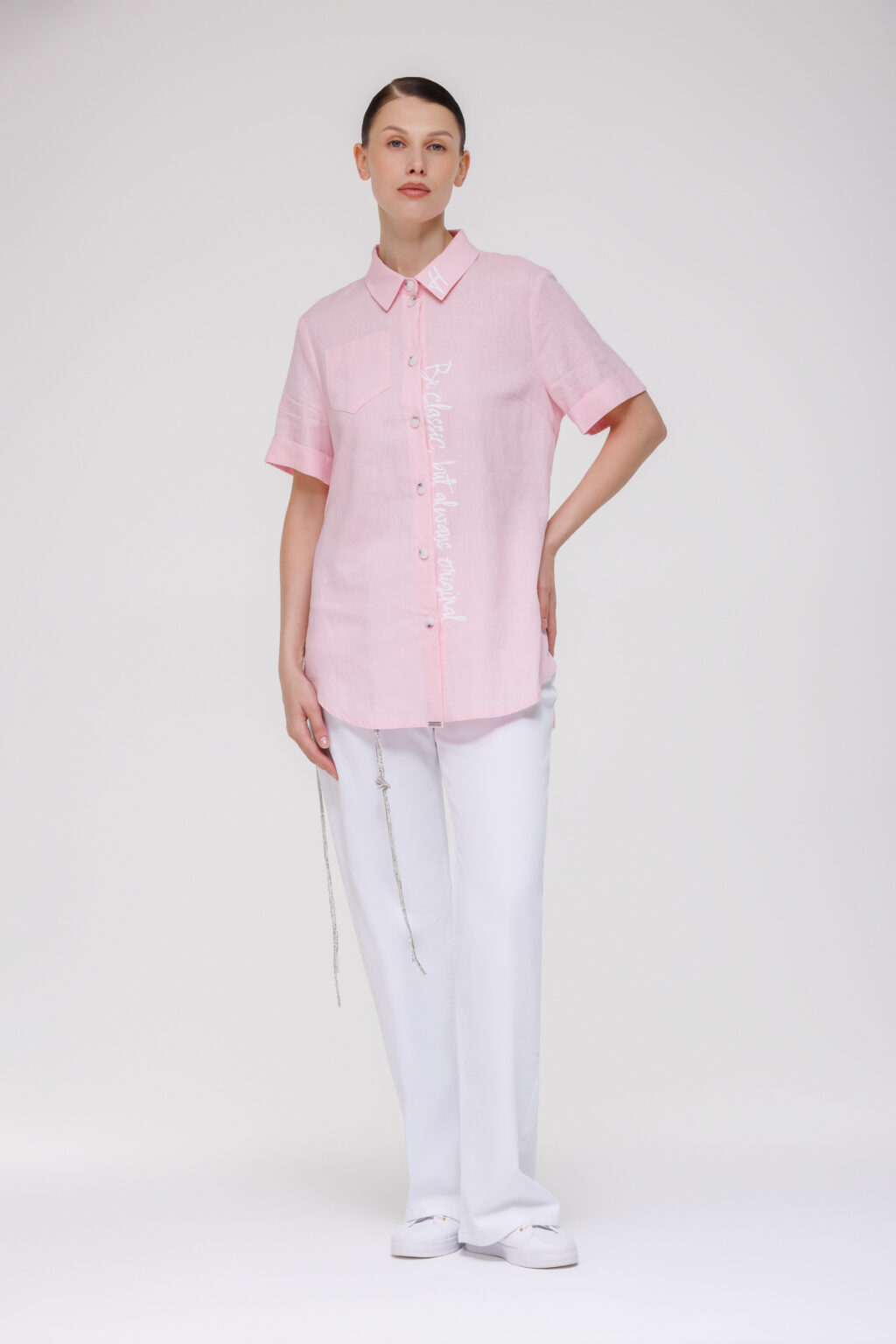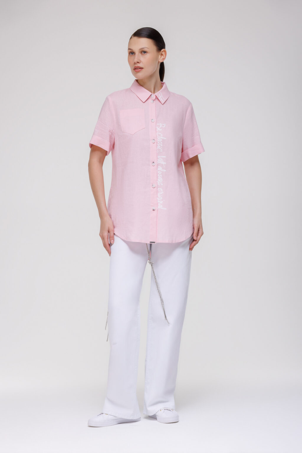 Такая рубашка органично вписывается в разнообразные ансамбли: она хорошо сочетается с льняными брюками для создания единого текстурного образа, с джинсами — для непринуждённого городского стиля, с чиносами или шортами — в летний период. Модель уместна для рабочих будней в офисе с неформальной атмосферой, прогулок по городу, встреч с партнёрами за обедом или отдыха на природе. Благодаря натуральному льну рубашка отличается воздухопроницаемостью и гигроскопичностью, обеспечивая комфорт в течение дня и становясь долговечным элементом гардероба, способным подчеркнуть сдержанную элегантность в самых разных жизненных ситуациях.