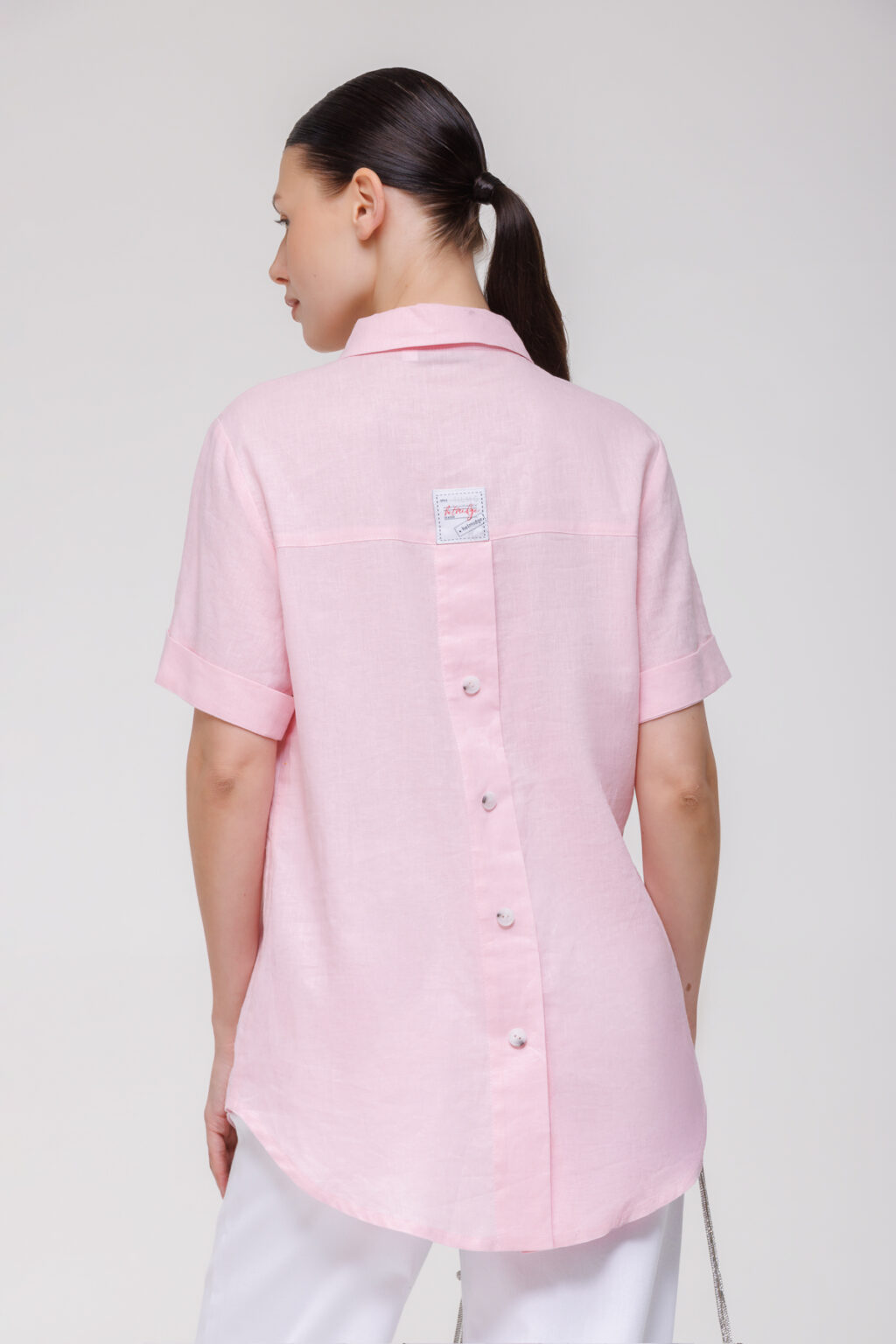 Льняная рубашка с декоративными пуговицами