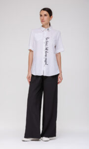 Прямой силуэт создаёт сбалансированный и лаконичный силуэт, который гармонично вписывается в различные стилистические решения — от повседневных до полуофициальных. Отложной воротник сохраняет классические черты рубашки, делая её уместной в деловом гардеробе с нестрогим дресс‑кодом и одновременно позволяя использовать в расслабленных городских образах.