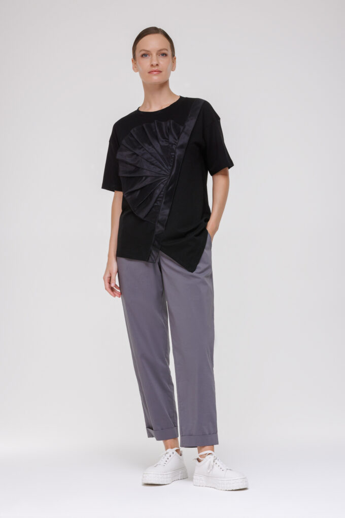Трикотажная футболка с отделкой из сетки