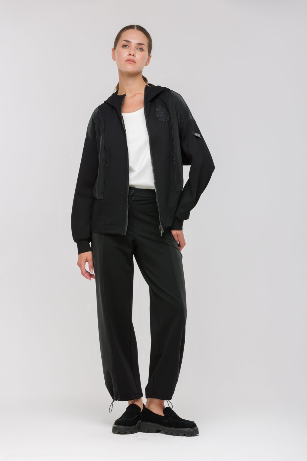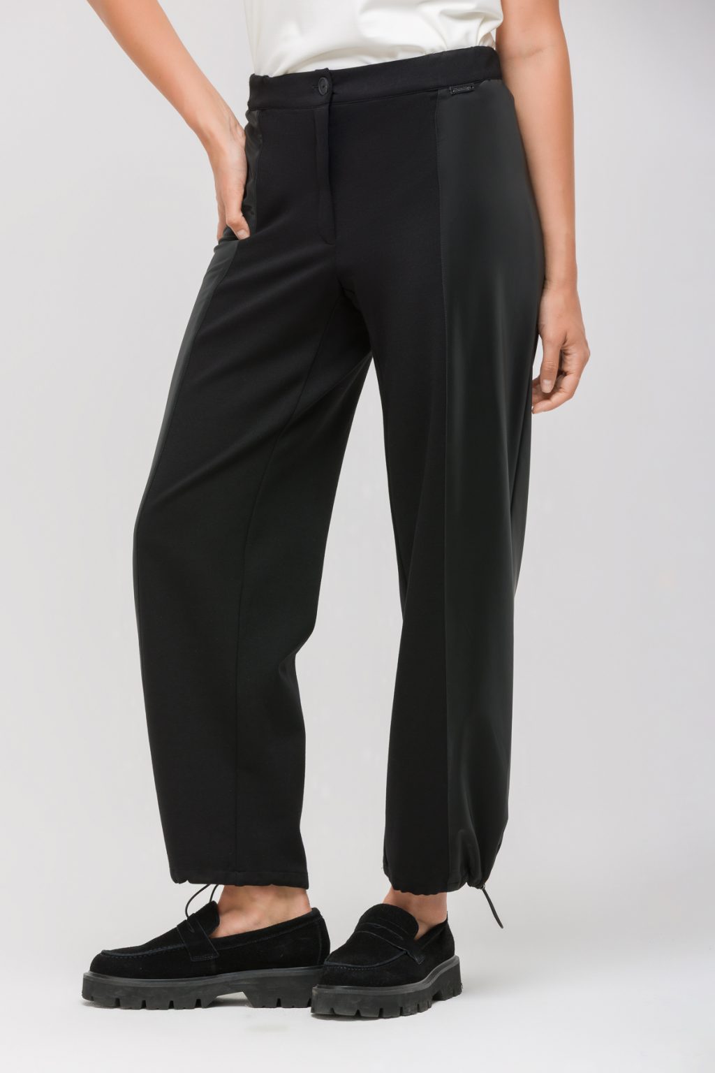В ритме большого города важно выбирать одежду, которая не только подчеркивает индивидуальность, но и дарит абсолютный комфорт в течение всего дня. Брюки из мягкого трикотажного интерлока созданы для тех, кто ценит свободу движений и современный стиль. Контрастные лампасы из плащевой ткани добавляют образу динамики и легкой спортивной нотки, а утепленная структура гарантирует тепло даже в прохладные дни. Средняя посадка на талии подчеркивает силуэт, не сковывая движения, а пояс на резинке с застежкой на пуговицу и молнию обеспечивает идеальную посадку независимо от ситуации. Прямой крой делает эти брюки универсальным выбором для повседневных дел или встреч с друзьями. Особое внимание заслуживает регулируемый низ на кулиске — он позволяет адаптировать форму брюк под настроение или погодные условия. В такой одежде легко оставаться собой, сочетая городской ритм с личным комфортом. Каждый шаг в этих брюках — это уверенность, стиль и свобода, которые становятся частью вашей повседневной истории.