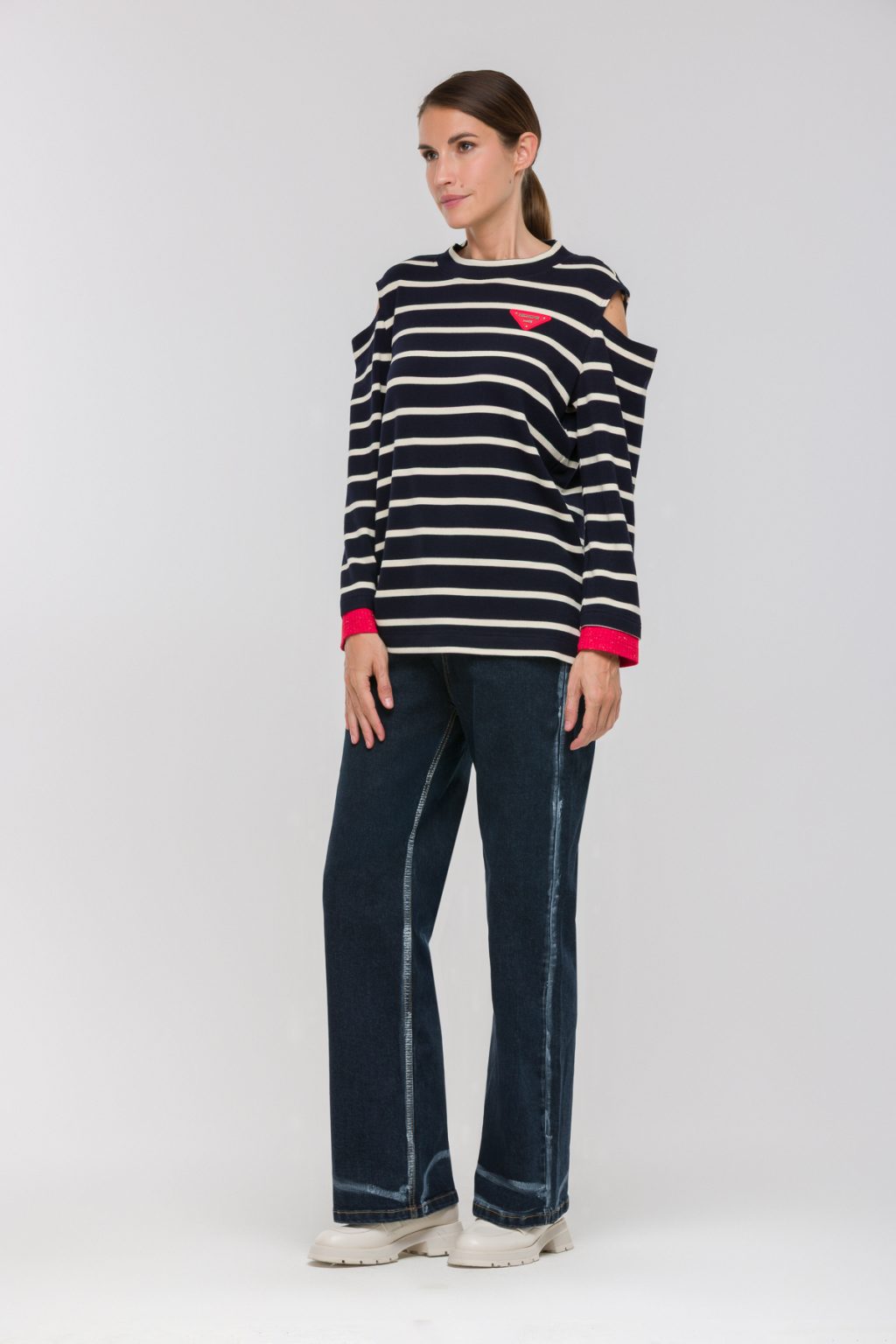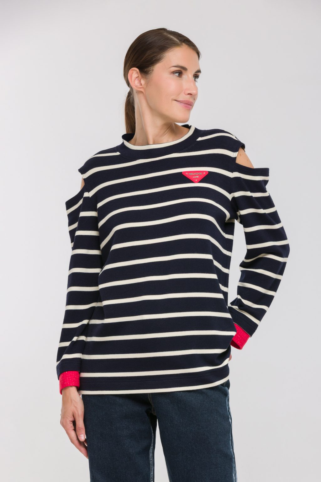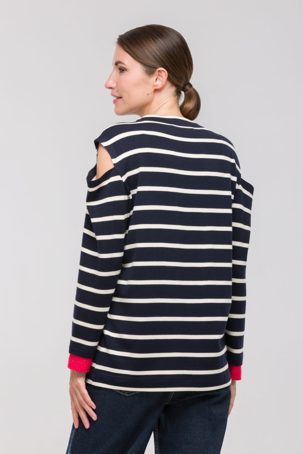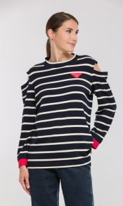 Трикотажная блузка в полоску с разрезами на плечах