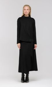 Длинная трикотажная юбка с декоративной молнией, проходящей от талии до самого низа, сразу привлекает внимание своей оригинальностью и продуманным дизайном. Средняя посадка на талии позволяет комфортно чувствовать себя в течение всего дня, а мягкий трикотаж приятно облегает фигуру, не сковывая движений. Длина макси добавляет образу элегантности, а асимметричный подол создает интересную динамику и лёгкую игру линий при каждом шаге. Разрез по переднему шву не только подчеркивает индивидуальность, но и делает походку более свободной и уверенной. Силуэт трапеция визуально вытягивает силуэт и подходит разным типам фигуры, помогая создавать гармоничный и современный образ. Юбка легко комбинируется с лаконичными топами, рубашками или уютными свитерами, позволяя экспериментировать с комбинациями в зависимости от настроения и случая. Декоративная молния становится стильным акцентом, который придаёт уникальность даже самому сдержанному ансамблю. В этой модели сочетаются комфорт, эффектность и внимание к деталям, что особенно ценно для тех, кто хочет выделяться, сохраняя ощущение свободы и легкости в любой ситуации.