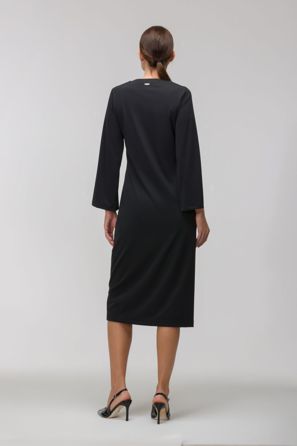 Трикотажное платье миди с расклешенными рукавами с разрезами — это гармония комфорта и выразительного стиля, воплощённая в лаконичном дизайне. Мягкий трикотаж приятно ложится по фигуре, позволяя наслаждаться легкостью и свободой движений в течение всего дня. Отсутствие застежек делает платье особенно удобным, а отсутствие подкладки придает ему воздушность и ненавязчивую простоту. Длина миди элегантно вытягивает силуэт, подчеркивая женственность и создавая утончённый образ, подходящий как для будней, так и для особых случаев. Прямой крой универсален и органично смотрится на разных типах фигуры, не ограничивая индивидуальность и позволяя экспериментировать с аксессуарами. Особое внимание привлекают расклешенные рукава с разрезами — они добавляют динамики и легкой драматичности, создают интересную игру линий и делают образ более живым и современным. Такое платье становится настоящей находкой для тех, кто ценит сочетание практичности и яркого дизайна, позволяя чувствовать себя уверенно и свободно в любой ситуации.
