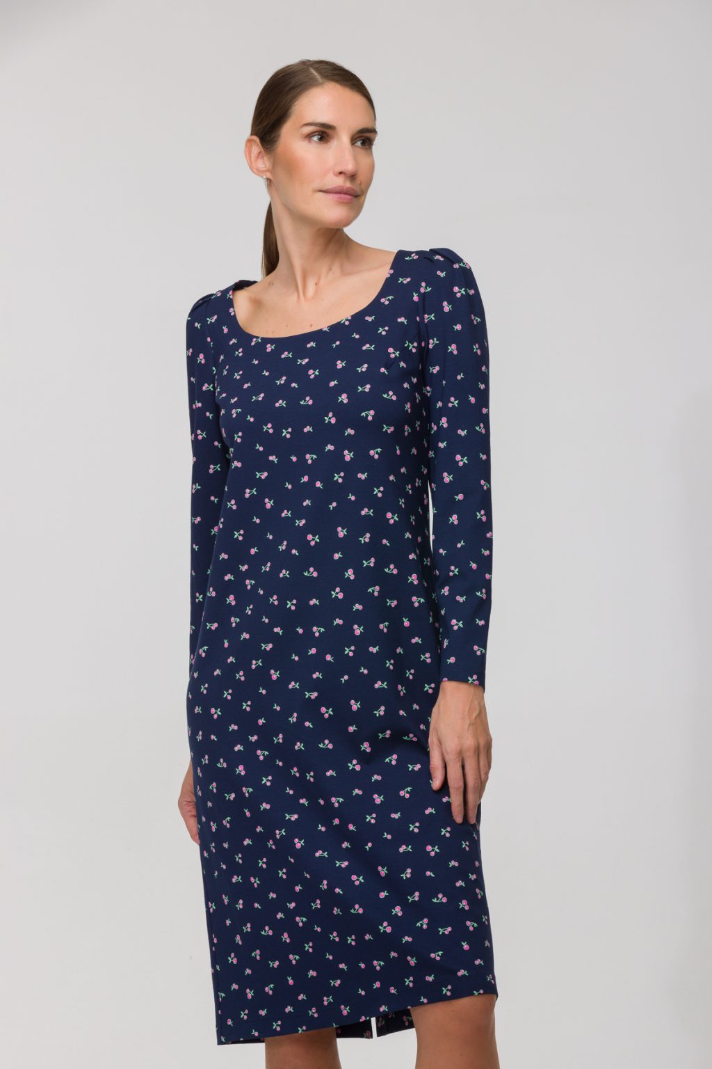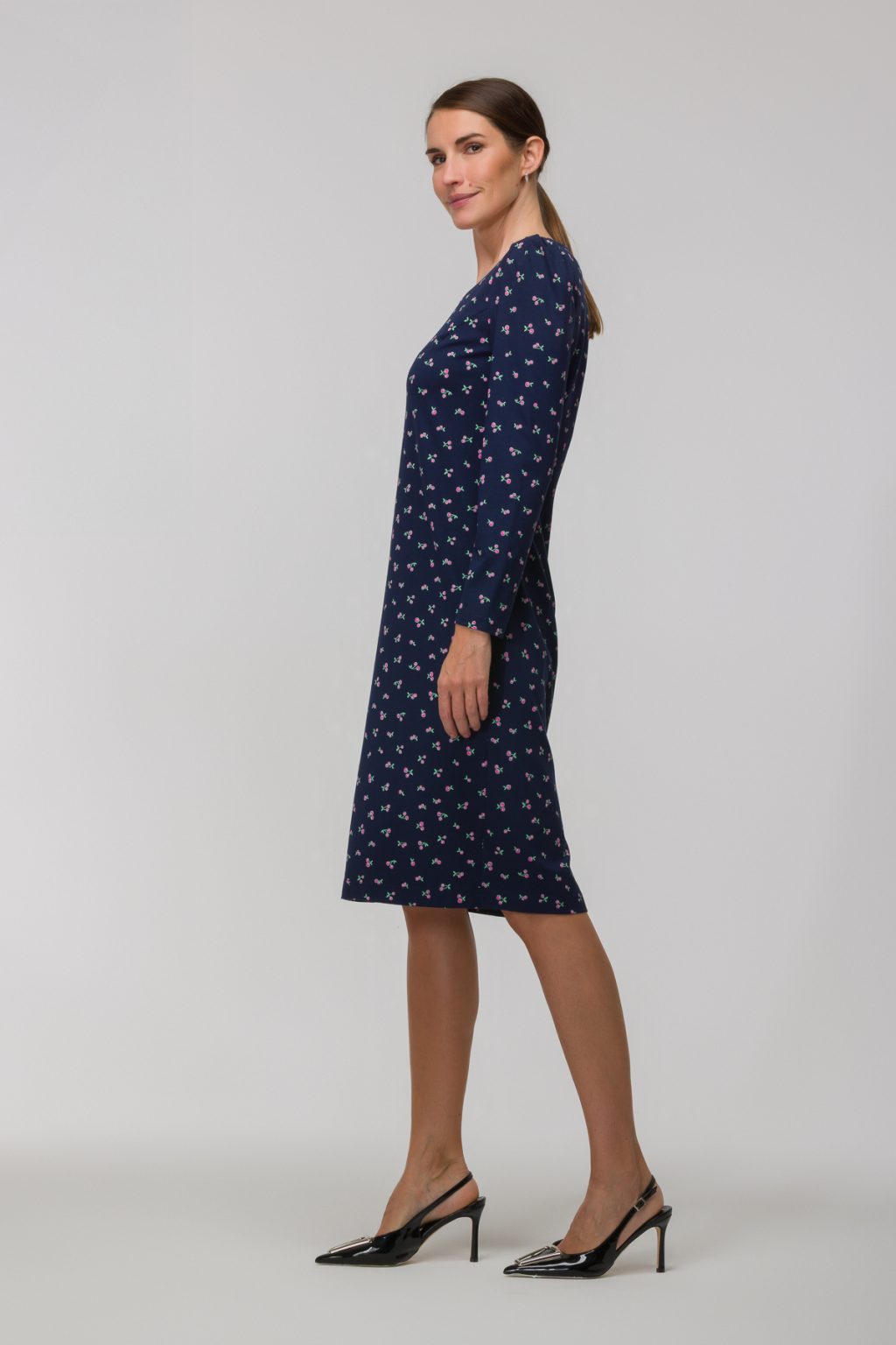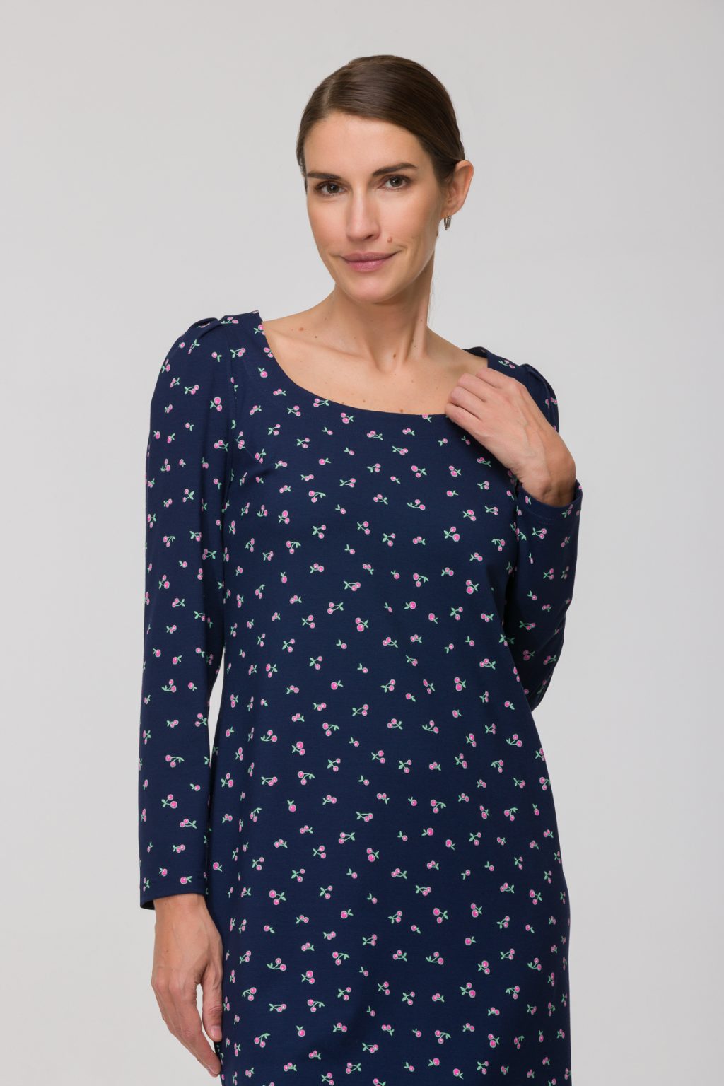 Прямое трикотажное платье с ботаническим принтом легко становится главным акцентом гардероба, сочетая в себе естественность и современную элегантность. Мягкий трикотаж приятно ложится по фигуре, обеспечивая ощущение уюта и свободы в каждом движении. Отсутствие застежки делает посадку особенно комфортной, а отсутствие подкладки придает платью легкость, делая его идеальным выбором для динамичных дней. Длина миди создает гармоничные пропорции и позволяет экспериментировать с образом, комбинируя платье с разной обувью и аксессуарами. Прямой крой универсален — он мягко подчеркивает силуэт, не ограничивая свободу и подстраиваясь под особенности фигуры. Длинные рукава добавляют ощущение уюта и мягко обрамляют руки, а округлый вырез горловины классически открывает линию шеи, давая пространство для экспериментов с украшениями. Особое внимание привлекает ботанический принт — он создаёт ощущение свежести и естественной лёгкости, деликатно выделяя образ среди других. Такое платье легко подстраивается под настроение, позволяя каждый день чувствовать себя уверенно и гармонично, независимо от обстоятельств.