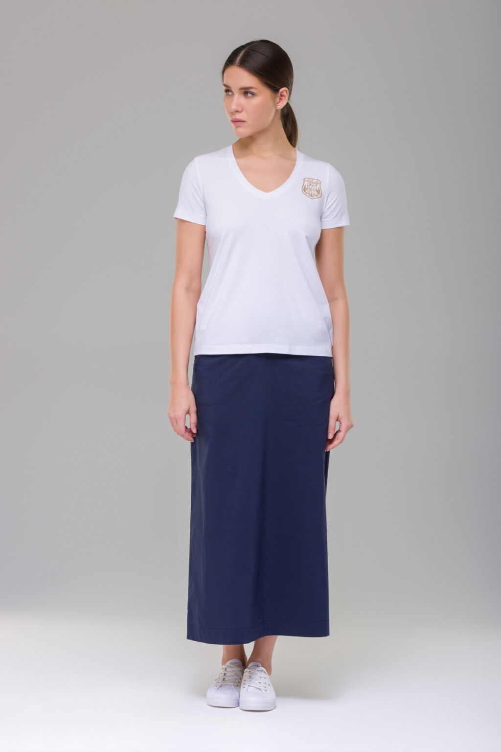 Юбка длины макси из эластичной смесовой ткани на основе хлопка представляет собой гармоничное сочетание практичности и элегантности. Отсутствие застёжки делает модель особенно удобной — юбка легко надевается и снимается, не доставляя никаких неудобств. Конструкция без подкладки придаёт изделию лёгкость и воздушность, позволяя коже «дышать» даже в жаркую погоду.