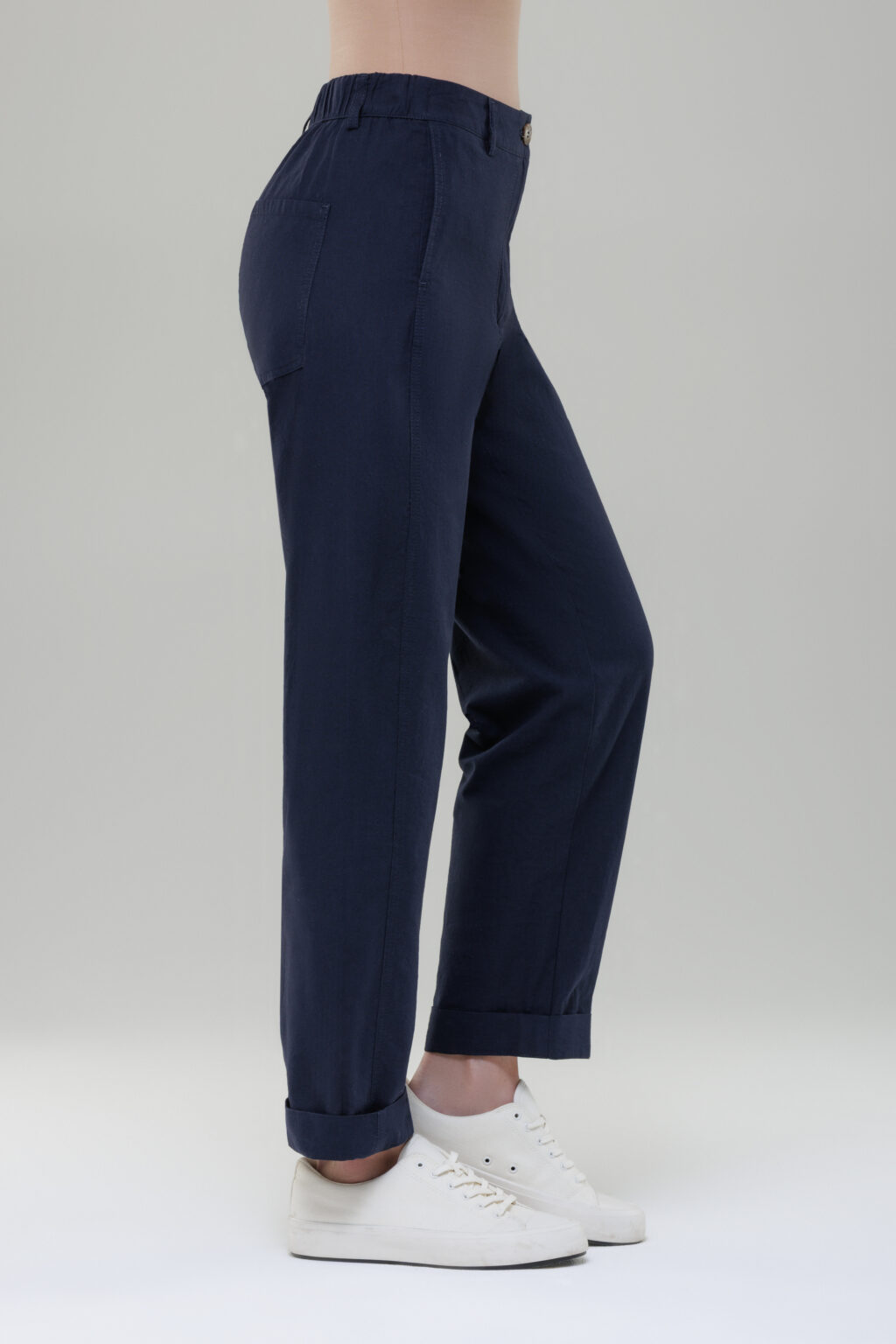 Пояс на резинке придаёт модели дополнительную эргономичность, обеспечивая комфортную посадку и свободу движений в течение всего дня. Средняя посадка на талии подчёркивает естественные пропорции силуэта, создавая сбалансированный и аккуратный внешний вид без излишней строгости.