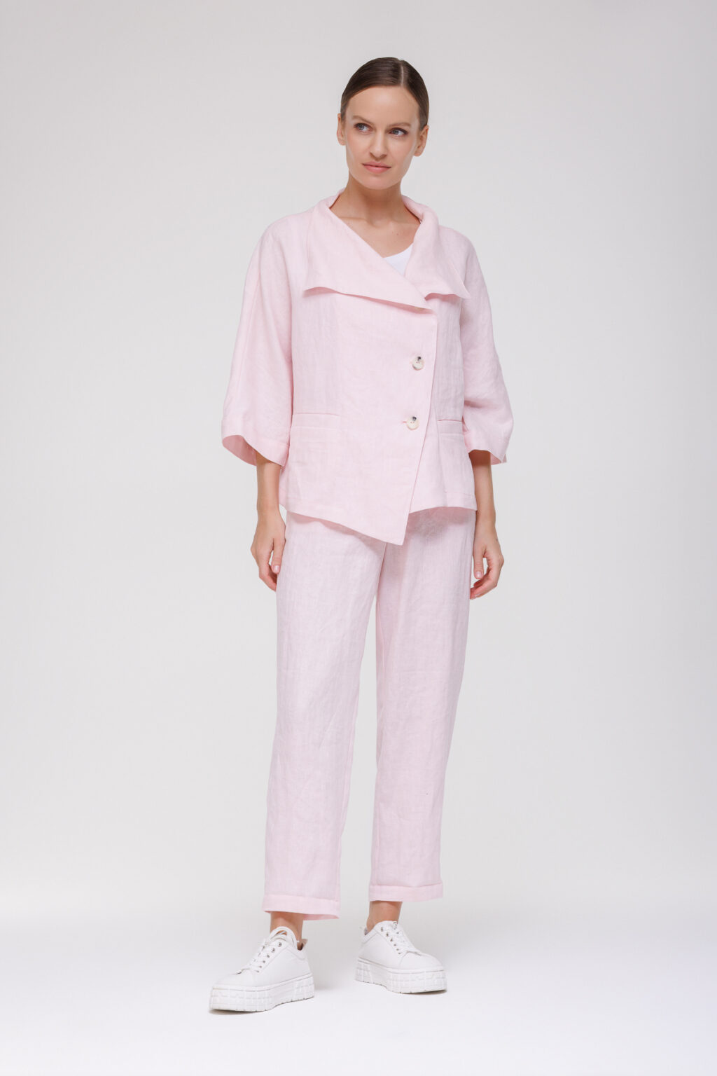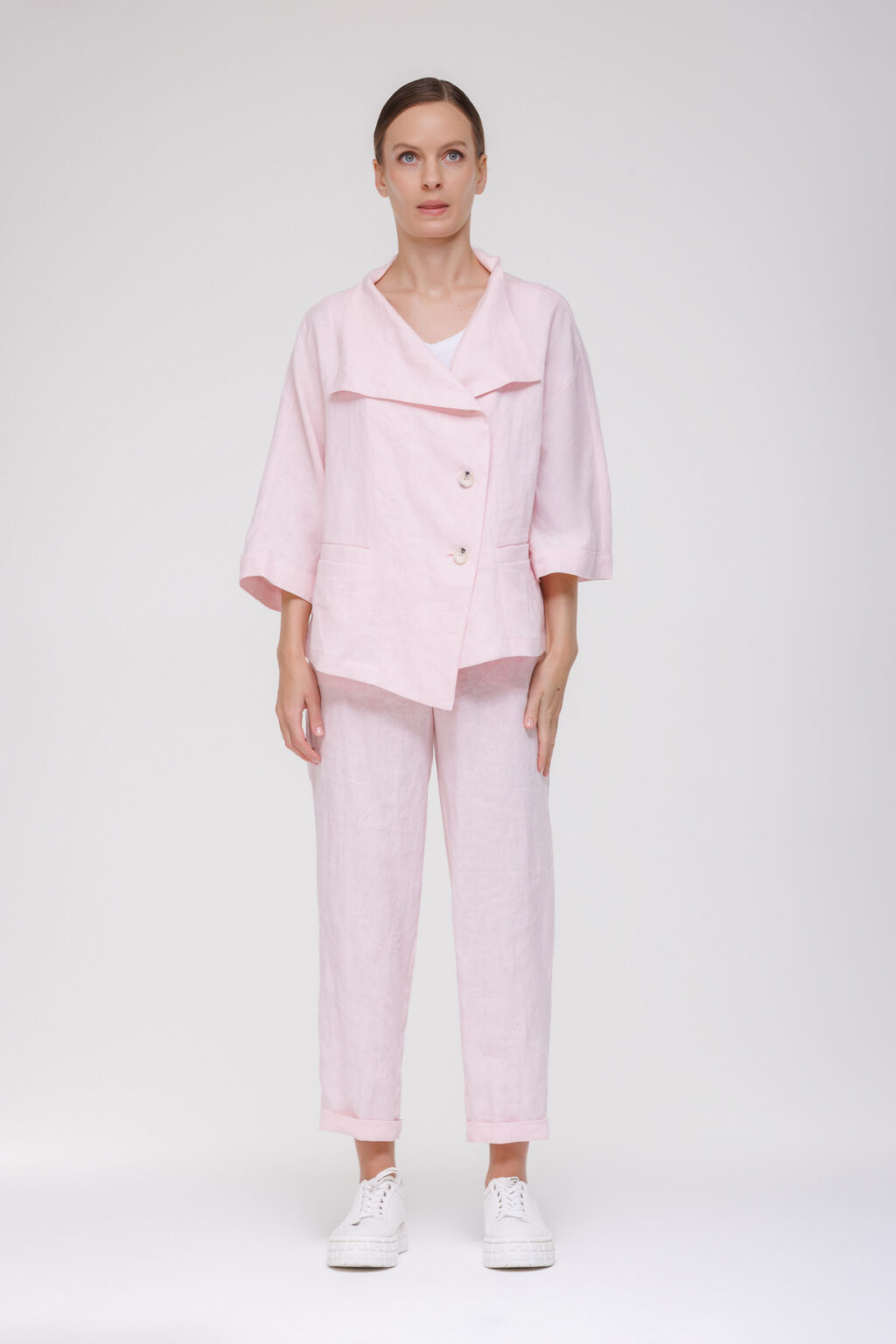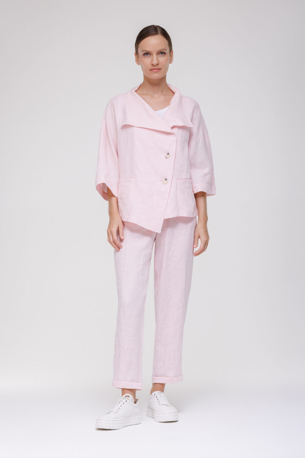 Такой жакет органично вписывается в повседневные и деловые образы: он уместен для работы в офисе с нестрогим дресс‑кодом, прогулок по городу, встреч с партнёрами или культурных мероприятий. Модель хорошо сочетается с юбками‑карандашами, прямыми брюками, джинсами скинни и платьями миди. Благодаря льняной ткани жакет отличается гигроскопичностью, быстро сохнет и сохраняет форму после стирок, становясь долговечным и стильным элементом гардероба.