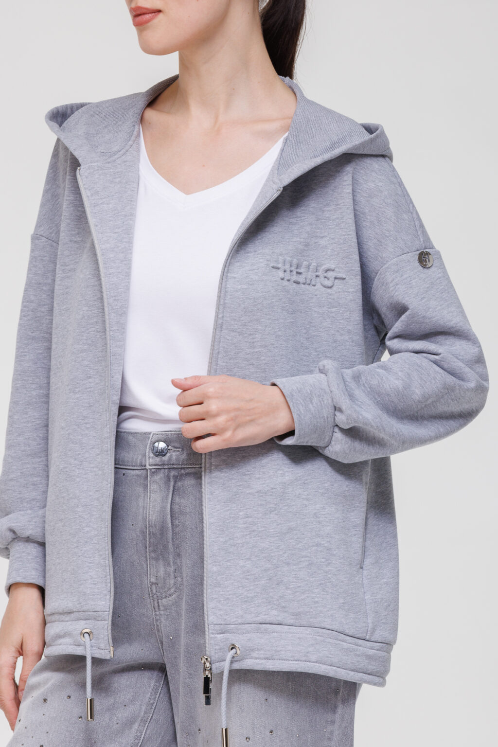Куртка с капюшоном на молнии из футера сочетает практичность повседневной верхней одежды с комфортом домашнего трикотажа, предлагая универсальное решение для межсезонья. Застёжка на молнию обеспечивает удобство эксплуатации и надёжную защиту от прохладного ветра, позволяя быстро надевать и снимать изделие.